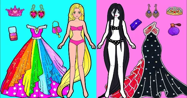 In which dress up look your paper doll will look more good?